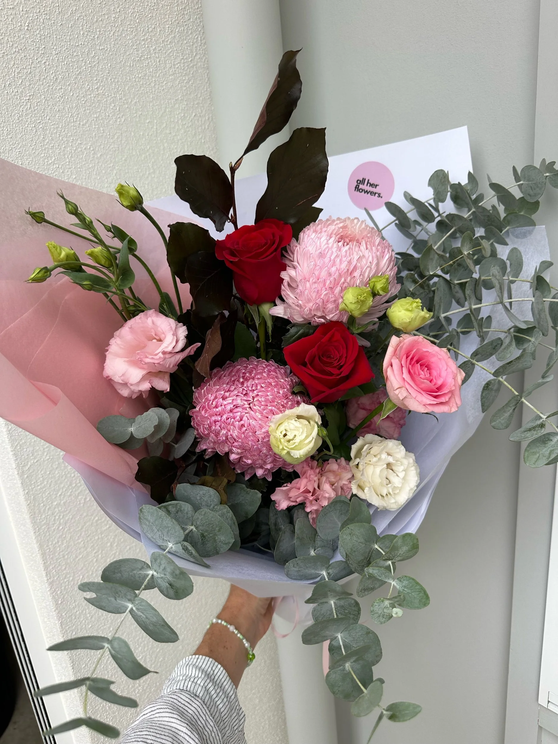There’s never a bad time to make someone’s day. Shop Shop Clear All | All | Florals | Hampers | Add Ons | Filters Categories All All Florals Hampers Add Ons Filter Clear Filter Easter Hamper $58.00 Valentines Day Blooms $75.00 Sold Out The Sip & Savour Hamper $119.00 The Posie Hamper $95.00 The Rejuvenate Hamper $145.00 Deluxe Bunch - Wrapped $130.00 Standard Bunch - Wrapped $75.00 Vase Flower Arrangement $89.00 Seasonal Bunch $59.00 Sold Out The Unwind Hamper $90.00 The Healing Hamper $85.00 Oriental Lillies $49.00 Loco Love Chocolate from $8.00 Milkwick Soy Candle $30.00 Balm Balm Co, Bath Salts $35.00 No results found No results match your search. Try removing a few filters. Visit @_allherflowers on Instagram to see current flower availability & stock.